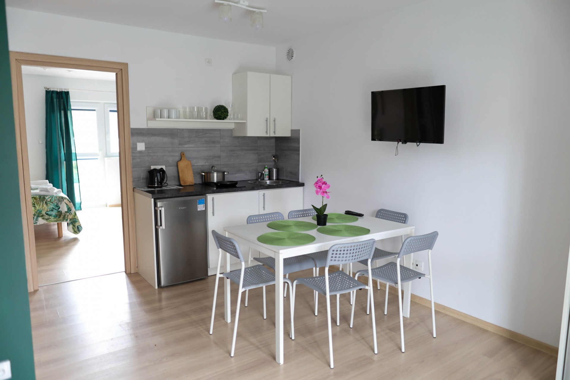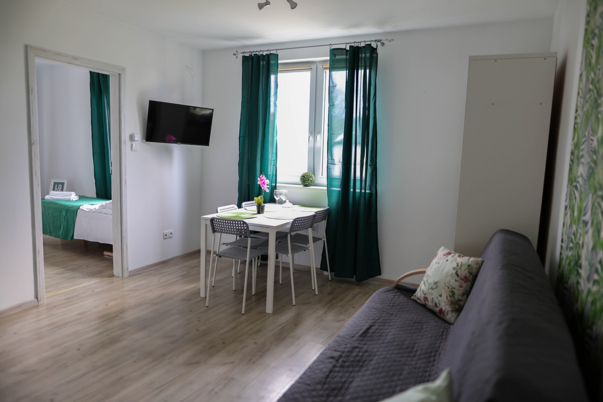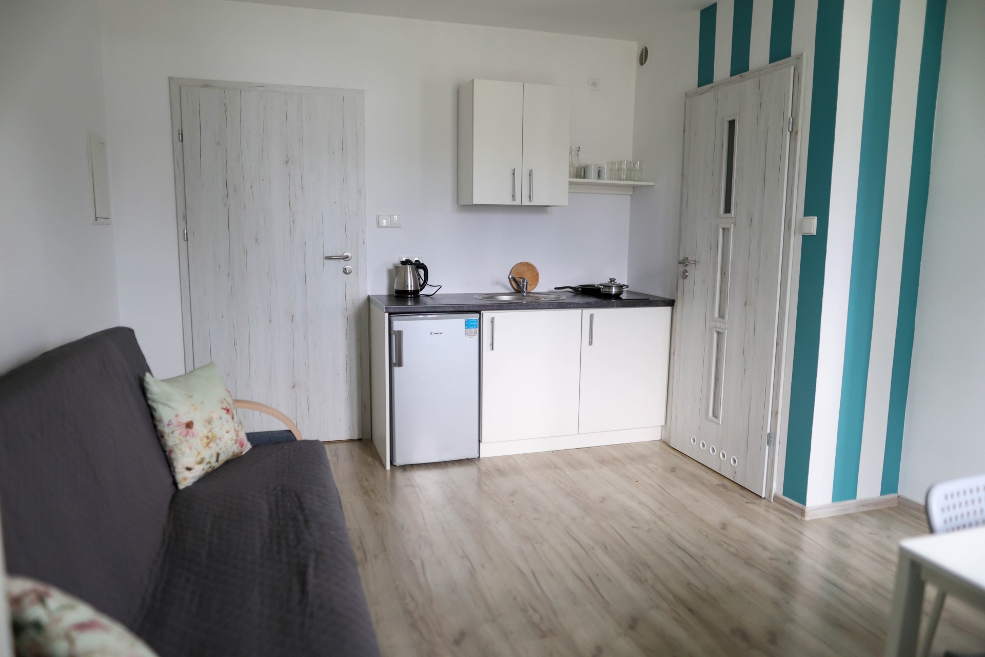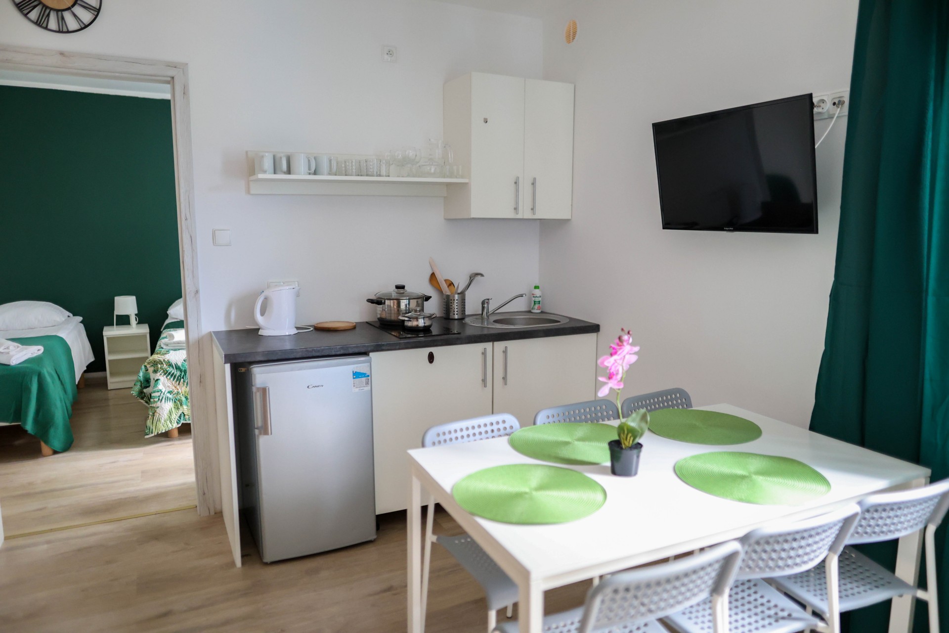 Apartamenty Poddąbek to apartamenty głównie składające się z sypialni i salonu, każdy z wyposażonym aneksem kuchennym.