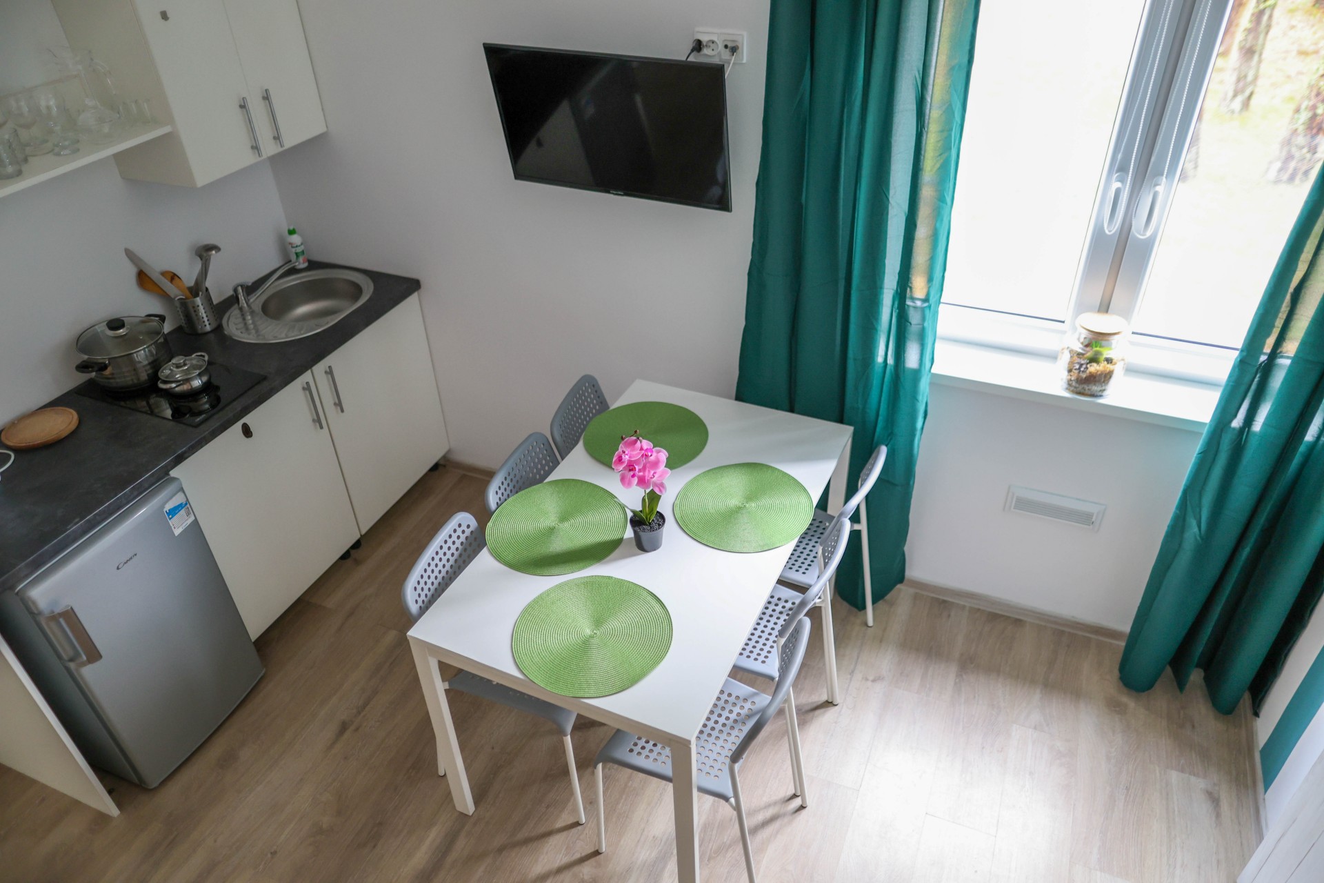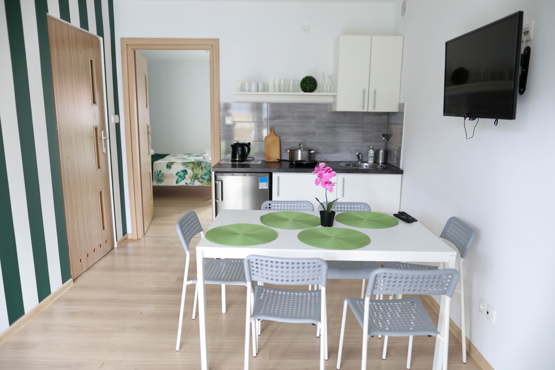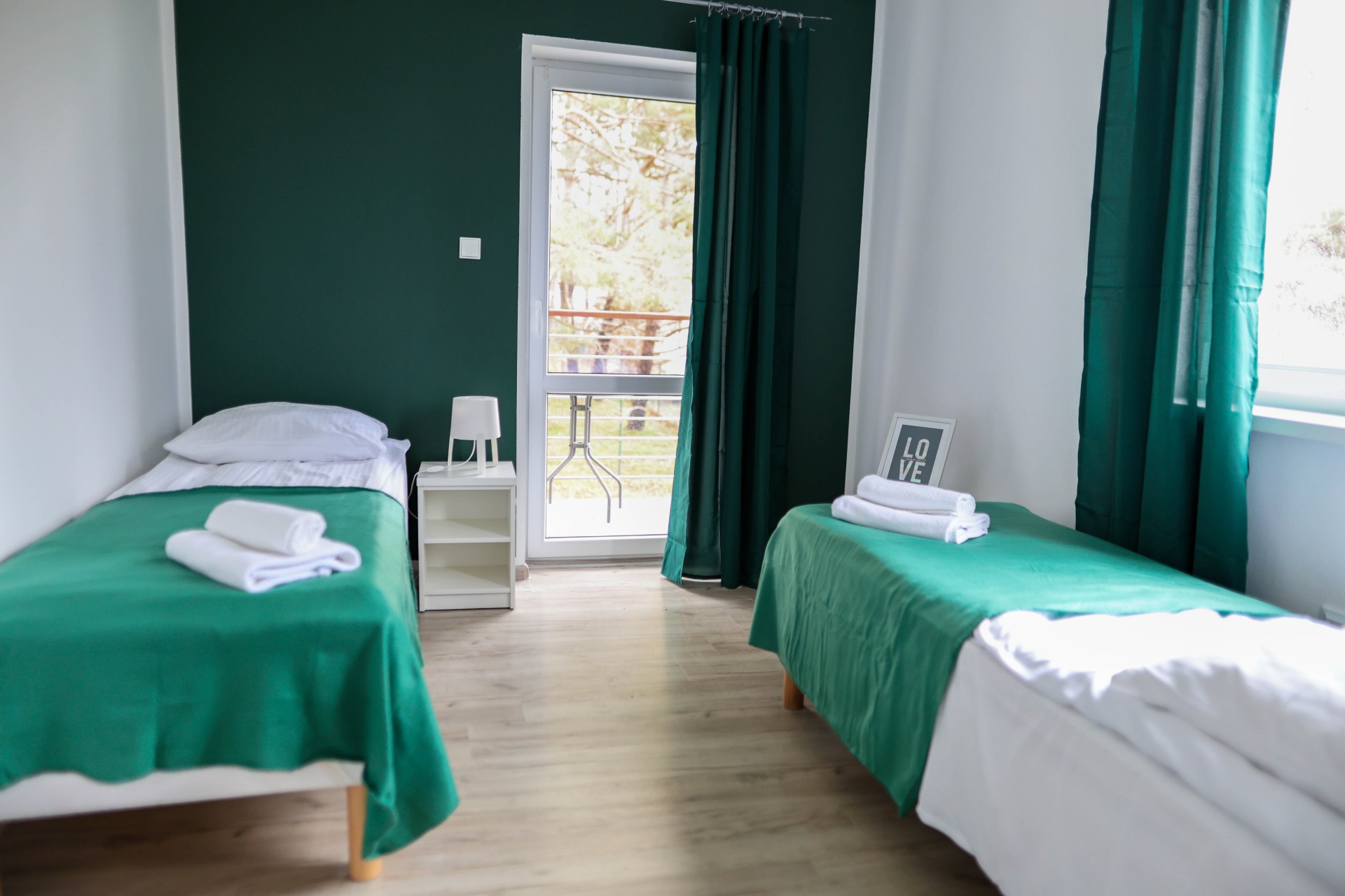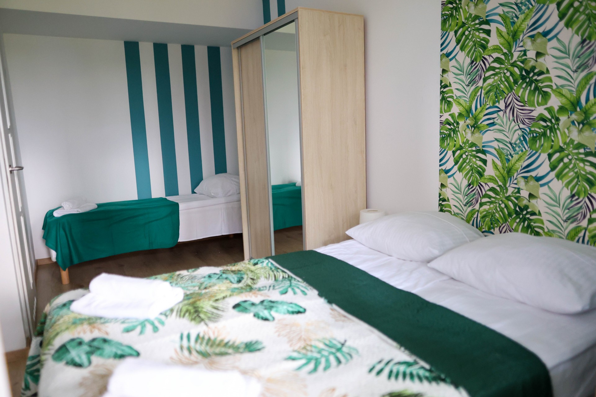 Apartamenty Poddąbek to apartamenty głównie składające się z sypialni i salonu, każdy z wyposażonym aneksem kuchennym.