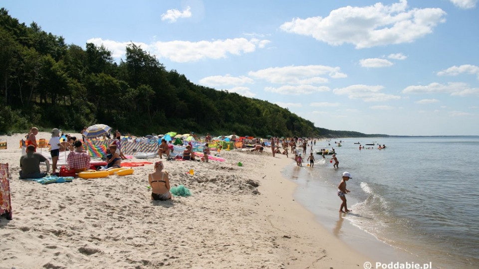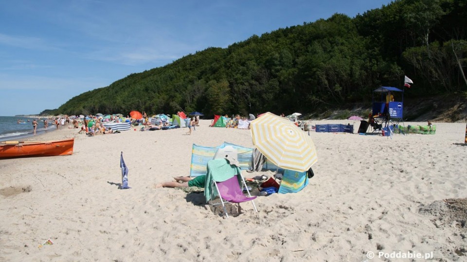 Plaża w Poddąbiu jest podobna do pobliskiej plaży w Dębinie. Usytuowana pod stosunkowo wysokim klifem, nie jest zbyt szeroka. W przeważającej części jest piaszczysta, ale jak to pod wysokim klifem zdarzają się kamyki. Latem wyznaczone jest tu letnie kąpielisko o długości około stu metrów. Droga na plażę wiedzie wśród lasu, natomiast same zejścia są wysokie, dość strome, składające się z wielu schodów, ułatwiają jednak zejścia.